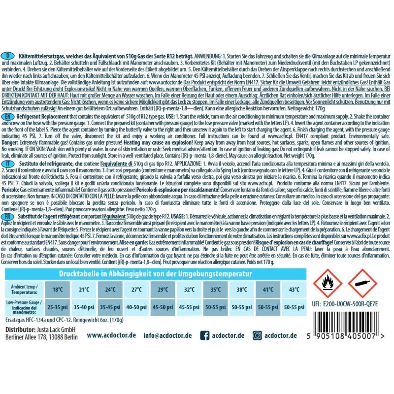 ☑️ A/C Doctor Klimagas Kältemittel R12 Ersatzgas ist 100 % sicher für das Klimaanlagensystem in jedem Fahrzeug